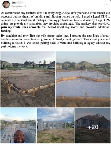 Building a CPN for maximum credit funding and creating the strongest expectation of approval requires time, knowledge, and experience. With 18 years of client success and thousands of real-world approvals, we are the experts in helping you gain loan and credit approvals.